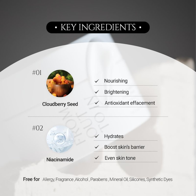 - POWERFUL SKINCARE FUSION: Experience the benefits of Cloudberry Seed & Niacinamide in our F.O.T.I Vegan Facial Moisturizer, delivering nourishment, antioxidant protection, hydration, barrier enhancement, and tone-evening properties in one potent formula for all skin types.