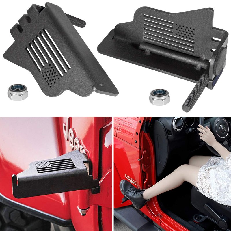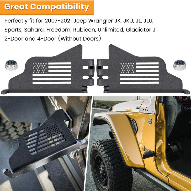 Front Foot Pegs Rest Pedal Exterior Door Hinge For Jeep Wrangler 2007-2023 JK JKU JL JLU Sports Sahara Freedom Rubicon Unlimited Gladiator JT 2-Door 4-Door US Flag Metal Black (2PCS)