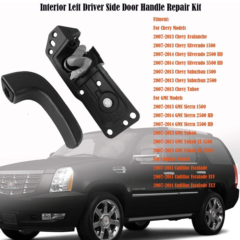- Compatibility: Interior Inside door handle compatible with 2007 2008 2009 2010 2011 2012 2013 2014 Chevy Avalanche Tahoe Suburban Silverado 1500 2500 HD 3500 HD, GMC Sierra 2500 HD 3500 HD GMC Sierra 1500 Yukon, Yukon XL 1500, Yukon XL 2500, 2007-2011 Cadillac Escalade ESV EXT