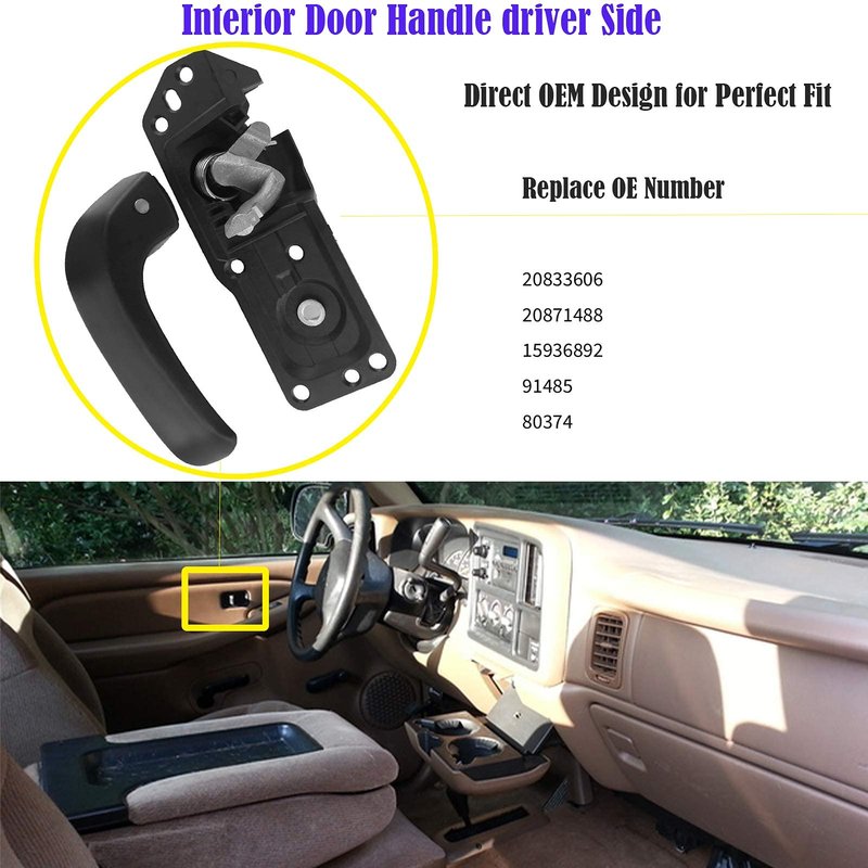 - Replace OEM Number: 20833606, 20871488, 15936892, 91485, 80374 driver door handle replacement for Chevy Silverado Avalanche Suburban Tahoe Cadillac Escalade GMC Sierra Yukon 2007 2008 2009 2010 2011 2012 2013 2014