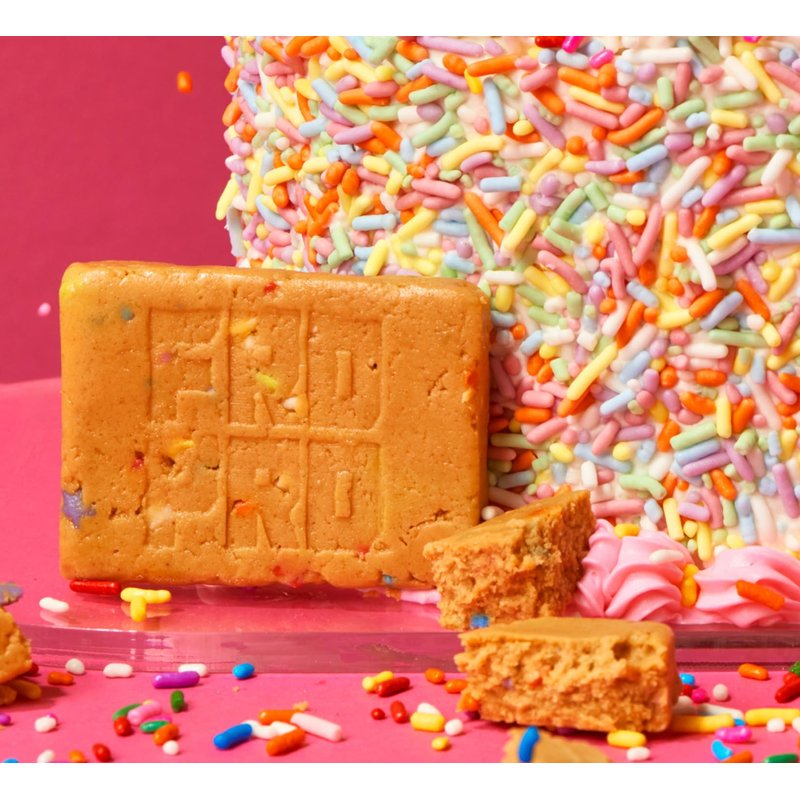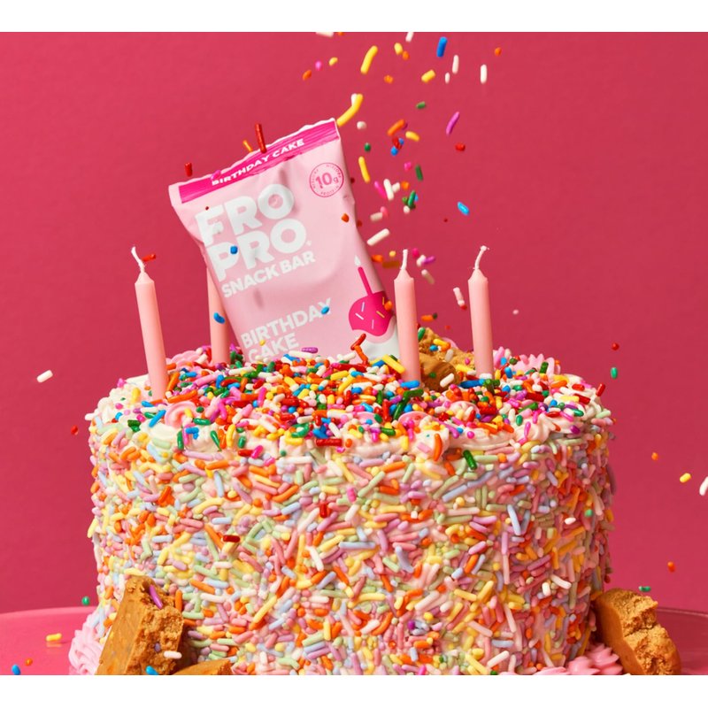 - BIRTHDAY CAKE: No one is going to pop out of this cake and sing to you. The rainbow sprinkles MIGHT sing to you — but only metaphorically. We’ve also heard that people dance when they pop out of birthday cakes as well! Either way, with FRO PRO, even if it isn’t your birthday — it still kind of is! Don’t forget to blow out your candles!
