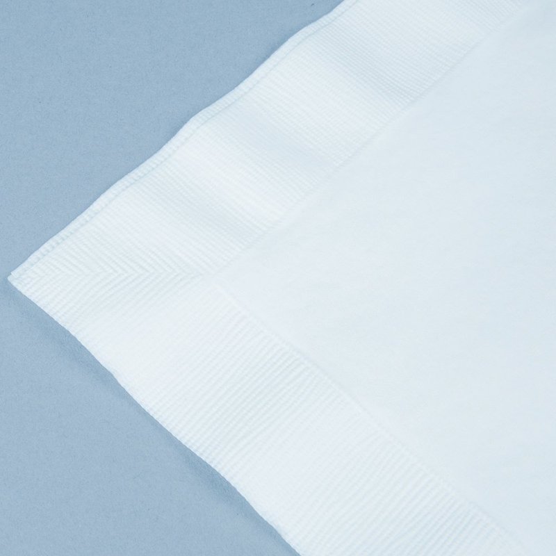 - These dinner napkins feature a solid color of Frosty White with an embossed coin edge pattern on two of the napkin edges