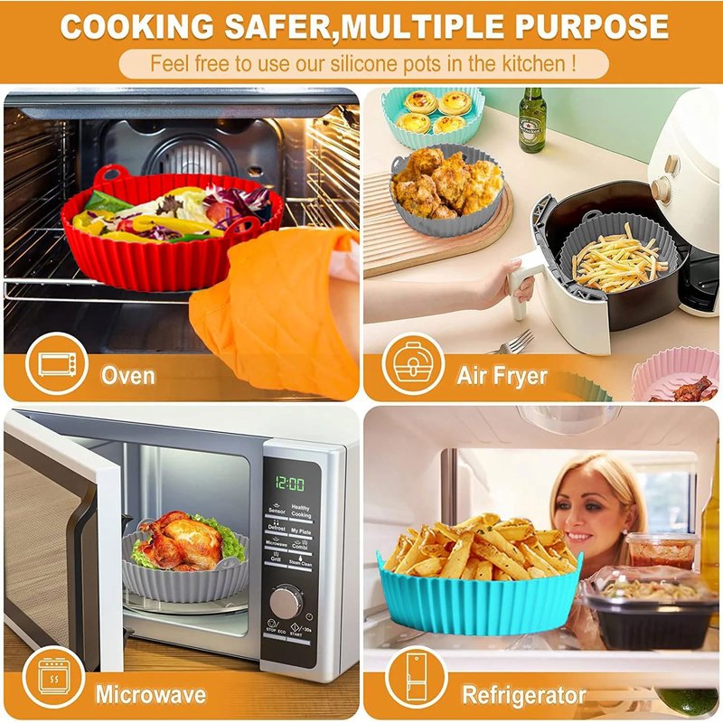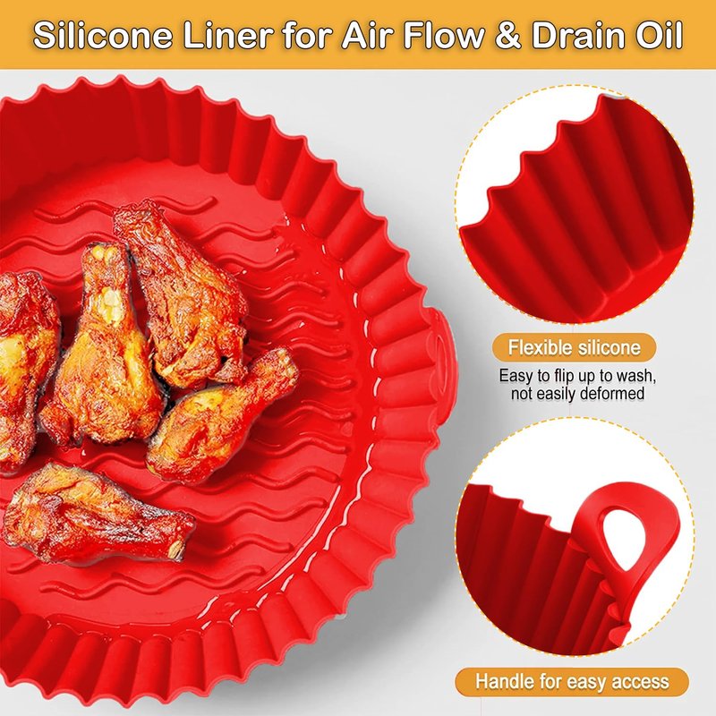 - ✅【EASY TO CLEAN & PRACTICAL DESIGN】As a must-have air fryer liner, you can easily clean your air fryer without worrying about food sticking to the bottom of the tray. Simply remove the tray and rinse it with water. Our air fryer silicone liner are designed with intimate handles on both sides to protect your hands from burns when removing the silicone pot.