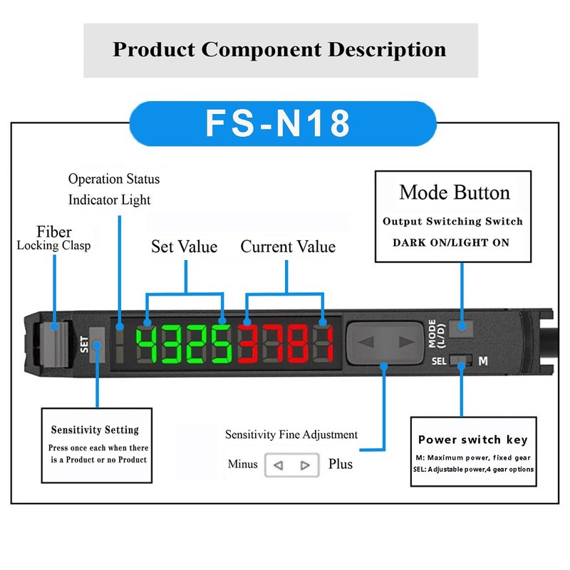 - 【Scope of application】Fibre optic sensors are suitable for use in a wide range of industries including automotive, liquid crystal, food and pharmaceutical packaging, smartphones and electronics, Position counting ,distinguish colors ,and detect positive negative products,lithium ion batteries and solar cells. (Recommended to use with the store's optical fiber)