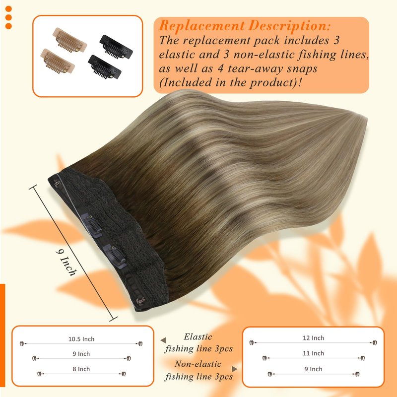 - Long Life:There are 6 replacement fishing lines,including 3 different sizes of elastic and non-elastic fishing lines,to ensure that the needs of customers with different head sizes are met,while prolonging the life of the hair extensions