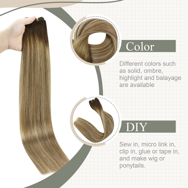 - 【Weft Hair Extensions Human Hair 】We have a variety of colors for you to choose from, black- brown- blonde, and the color effects range from pure to highlight to balayage/ombre. We will always be deeply involved in the expansion of colors and sizes.