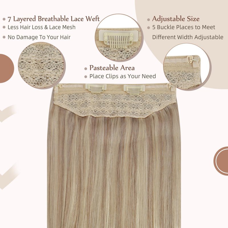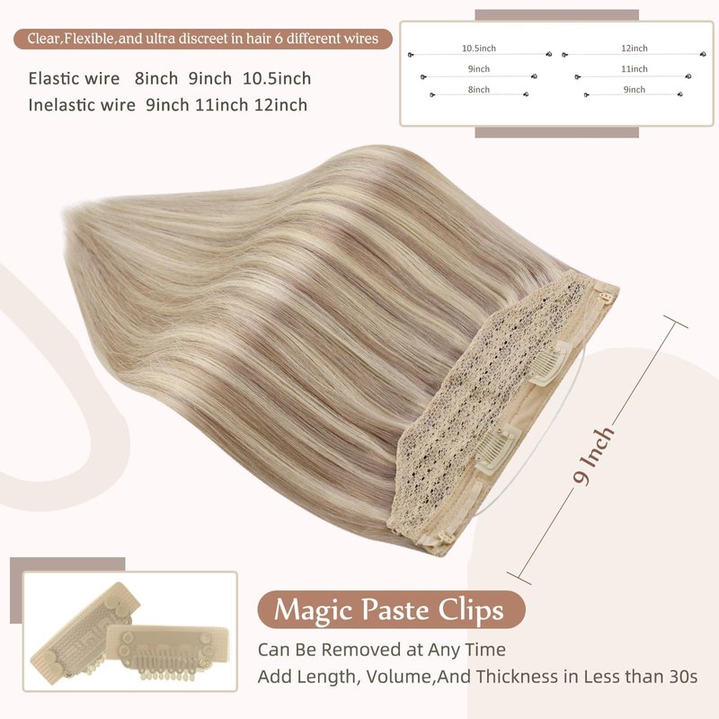 Fshine Secret Extensions Human Hair Wire Hairpieces Ash Blonde Highlighted Bleach Blonde 12Inch One Piece Clip in Real Hair Extensions Fish Line Layered Human Hair Extensions for Short 70Grams