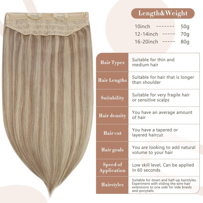 - Large Gram Product Upgrade—In response to some customers' feedback that the hair volume still can't meet the demand, we have customized large grams of wire hair extensions, 16'': 100g, 18''-20'': 120g. So that you can achieve the desired hair weight.