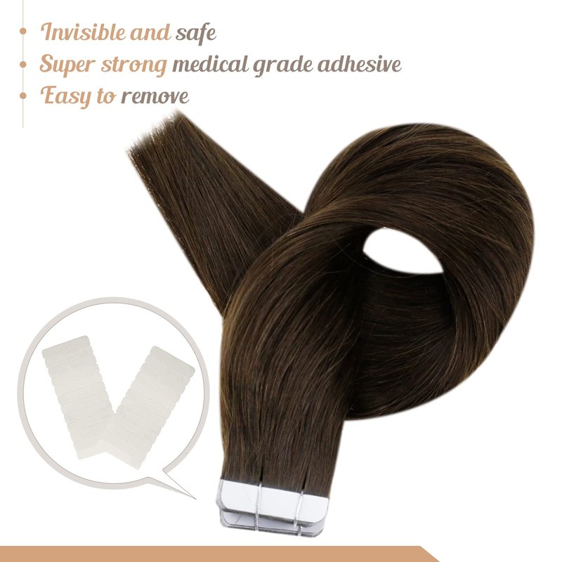 - 【Remy Human Hair Extensions】 We pride ourselves on offering the highest quality seamless invisible tape in hair extensions for women. Our tape hair extensions are silky and soft, with no tangles, it provides a more natural look like your own hair.