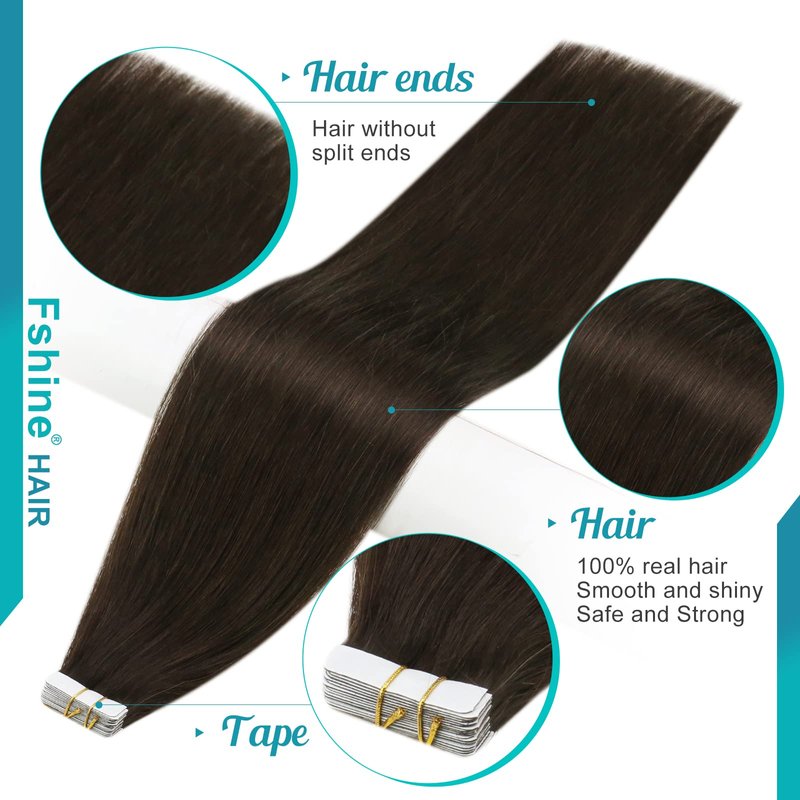 - 【Real Human Hair】Fshine Tape in hair extensions human hair are made from premium real human hair. No animal hair or synthetic hair.
