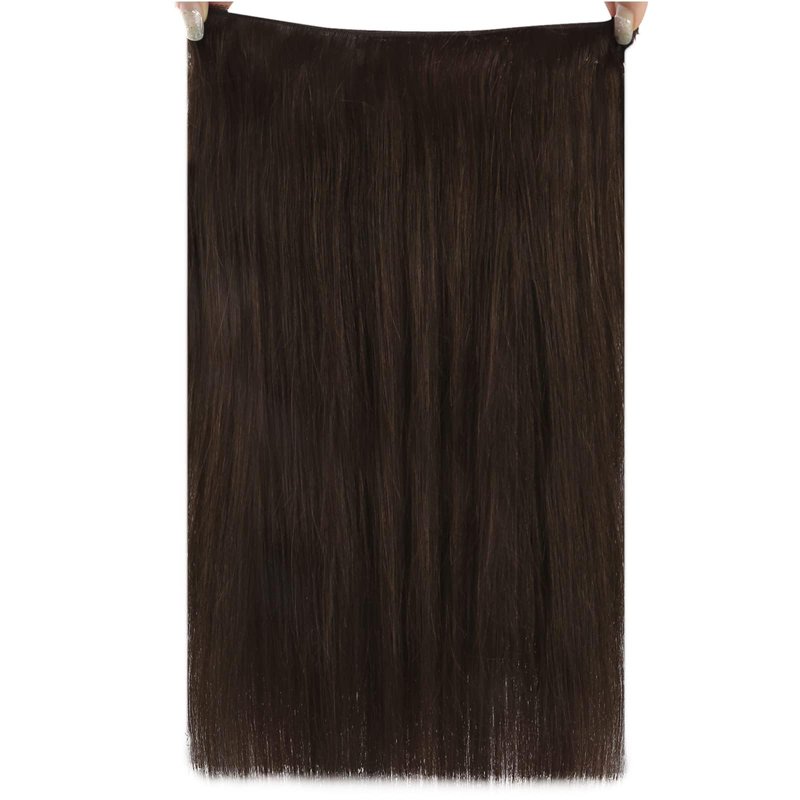 Fshine Wire Hair Extensions Real Human Hair Dark Brown 20 Inch 80g Hairpiece Wire Hair Extensions Straight Human Hair with Transparent Invisible Fish Line Remy Human Hair Extensions