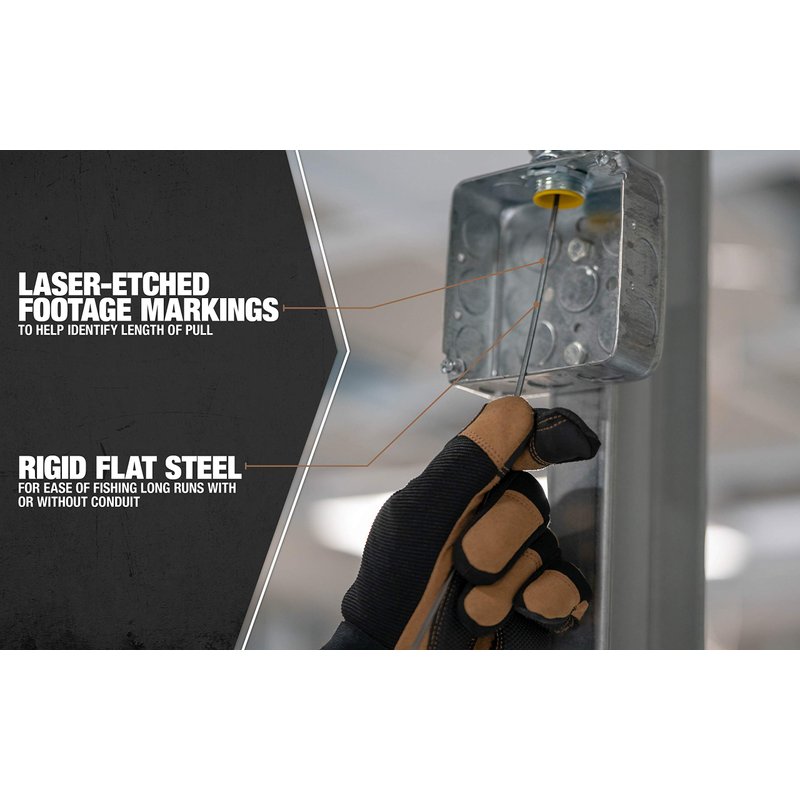 - FUNCTIONALITY: Our 1/8-Inch wide tempered spring steel fish tapes provide excellent fishing performance The rugged case is impact resistant and jobsite tough