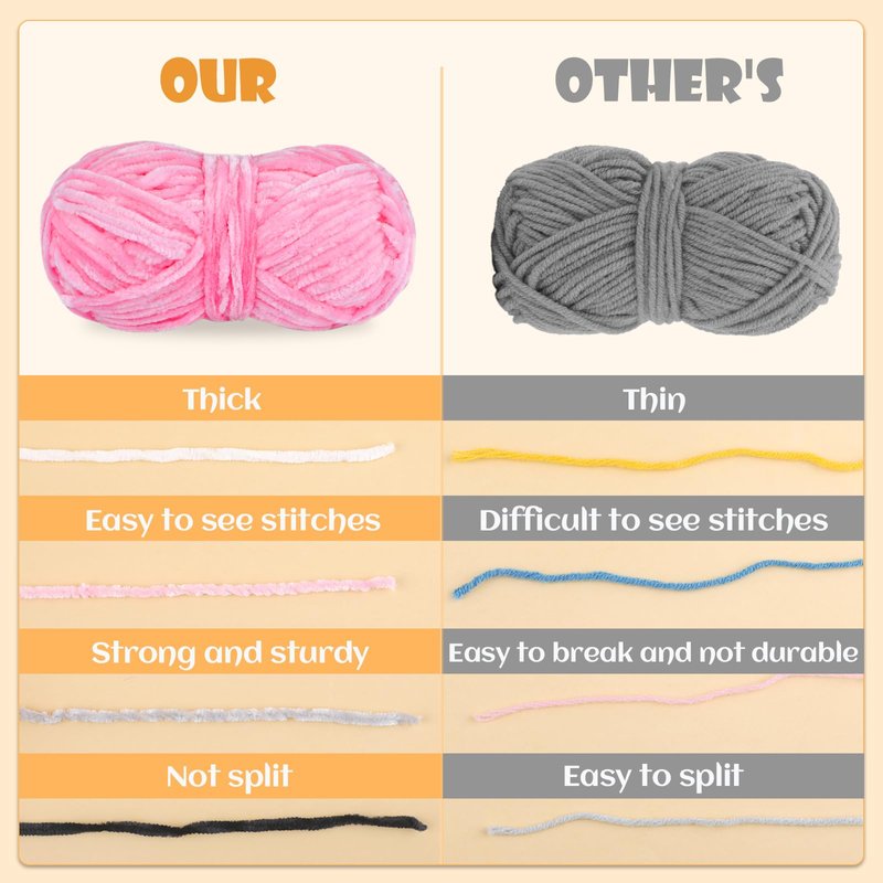 - Soft chenille yarn: Made of polyester, chenille yarn is soft to the touch, lightweight, and perfect for knitting a variety of handmade projects.