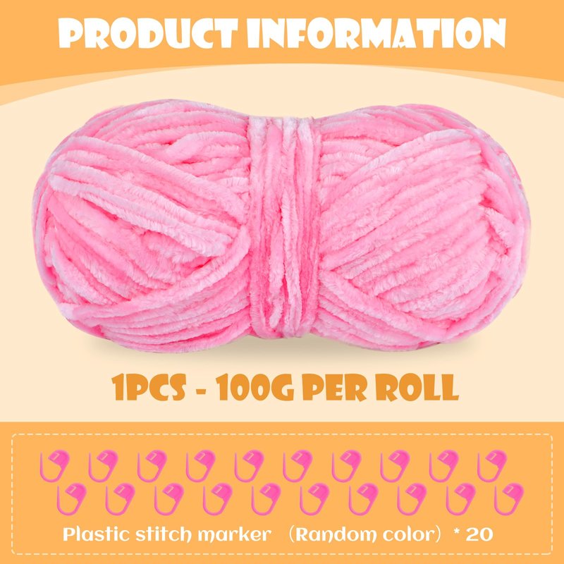 - Chenille yarn set: This chenille yarn set includes a big roll of chenille yarn, made of 100% polyester fiber, each roll weighs 100 grams, about 80 meters, 20 plastic stitch markers, help you very Nice finished crochet project.