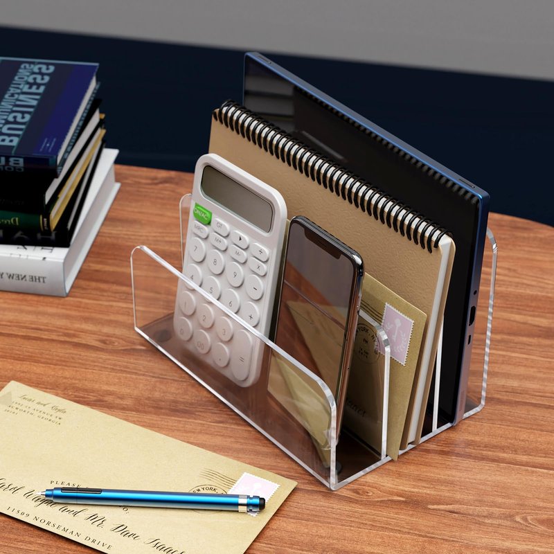 - Multipurpose Acrylic Sorter: Acrylic File Holder is the ideal desktop file organizer for your office, home or school to make your cluttered desktop neat and organized, say goodbye to messy files or missing pens and Neatness is the key to efficiency. Vertical acrylic file organizer will be a modern addition to your office, neat and tidy.