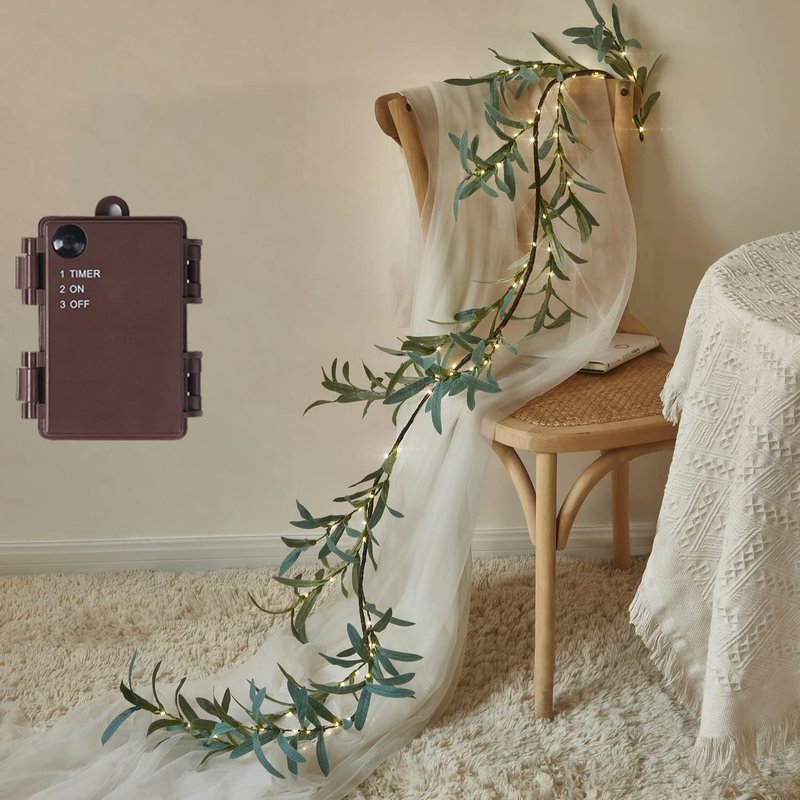 - π Olive Garland Lights: Totally 96 LED fairy lights decorated on the olive garland,creating a cozy and soft glow,These lights have 30,000 hours lifespan, and bulbs are non-replaceable.