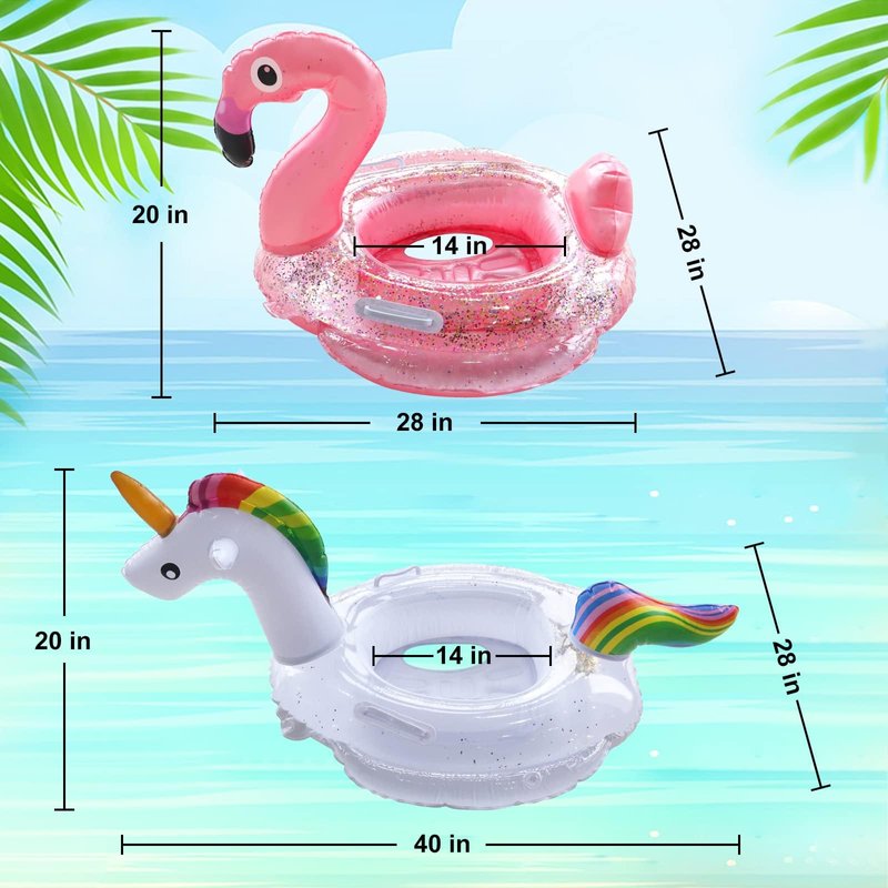 - Value Set: Our inflatable pool float set includes flamingo and unicorn pool float tubs with sequins. Suitable for pool float toy, lake party, beach party, and summer pool party decoration.