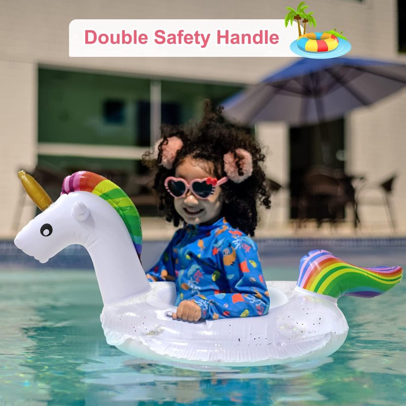 - Safety Protection: These two kids pool floats are equipped with wider airbags and safety handles on both sides, and specially designed safety seats that effectively lower the center of gravity and improve balance, making your children safer to play(the safety seat can be inflated).