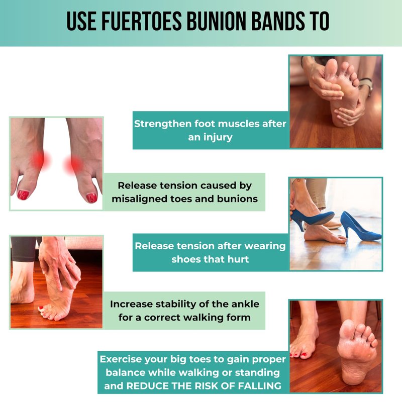 - Amazing Benefits: Use this bunion fix device to strengthen your foot muscles, reduce bunion pain, correct misaligned toes, relieve tension from tight shoes, and boost ankle stability. Improve your overall foot health with Fuertoes!