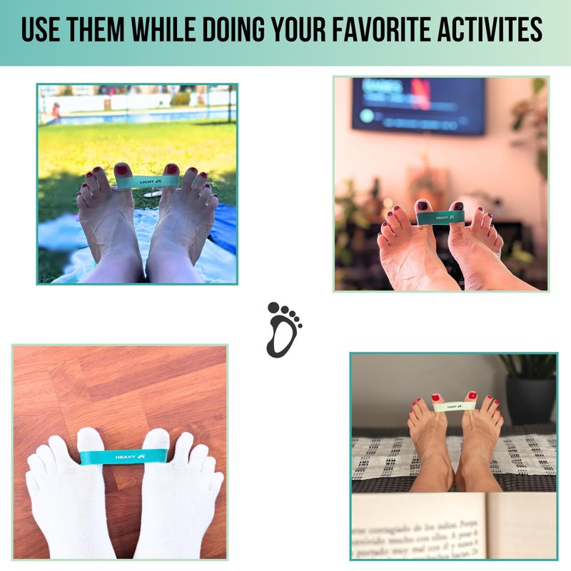 The Fuertoes elastic ankle strengthener is not just for bunion fix and relief; this strap is also great for preventing future foot issues, tailors bunion, curled toes, improving toe flexibility and mobility, and relieving tension after wearing uncomfortable shoes. Start using them for just 10-15 minutes a day and take the first step towards healthier, happier feet!