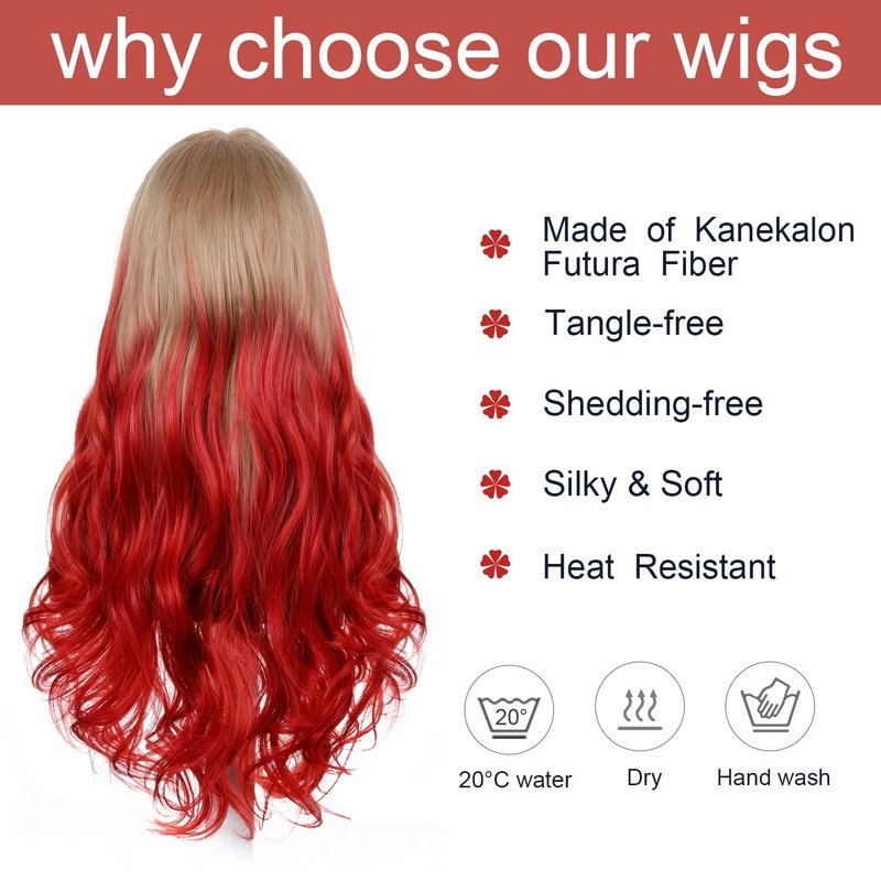 - ✓ 𝗪𝗶𝗴 𝗦𝘁𝘆𝗹𝗲 - The wave red wig is suitable for all women, natural and realistic at all times. This long wavy wig will bring you a brand new beauty.