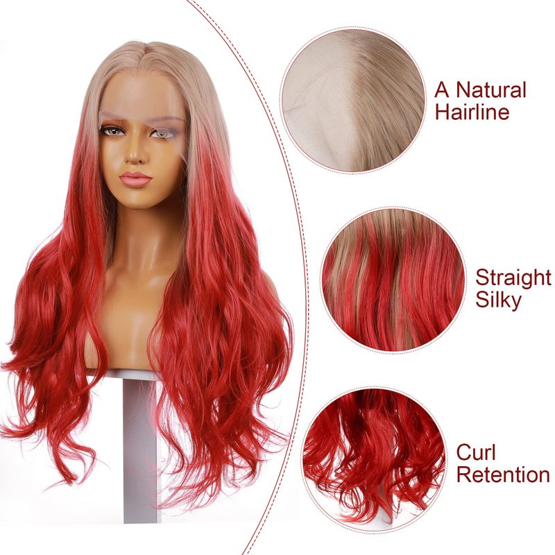 FUHSI Blonde Red Wigs for Women Long Wavy 13x4 HD Lace Front Wigs Honey Blonde Ombre Synthetic Red Wigs Pre-plucked for Girls Costume Party