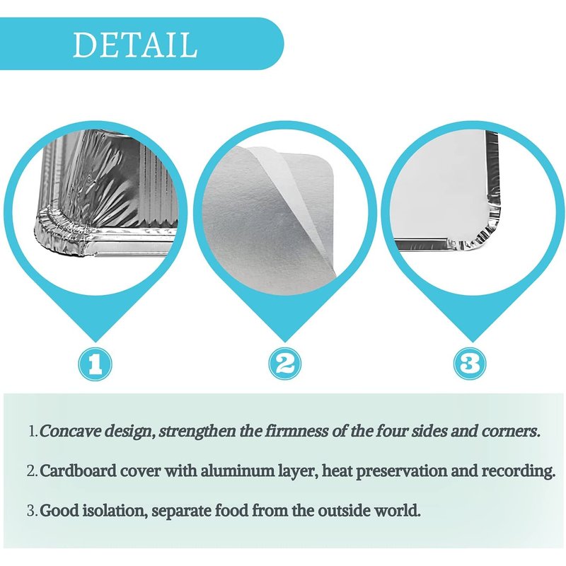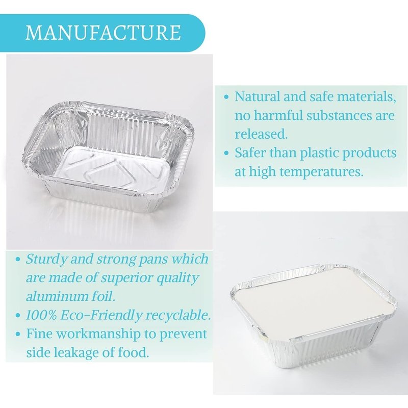 - ✅ Safe: Compared with traditional disposable plastic boxes: aluminum container can withstand high temperatures without producing any harmful substances, and are recyclable and environmentally friendly materials.