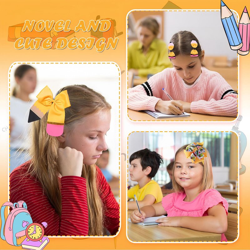 - 【School theme design】 : The grosgrain bow, headband and Scrunchies designed with pencil pattern as the theme are full of school elements, suitable for most beginning children and little girls ready to go to kindergarten. The rich bow styling makes this hair accessory the perfect choice to accessorize your hair for the school year.