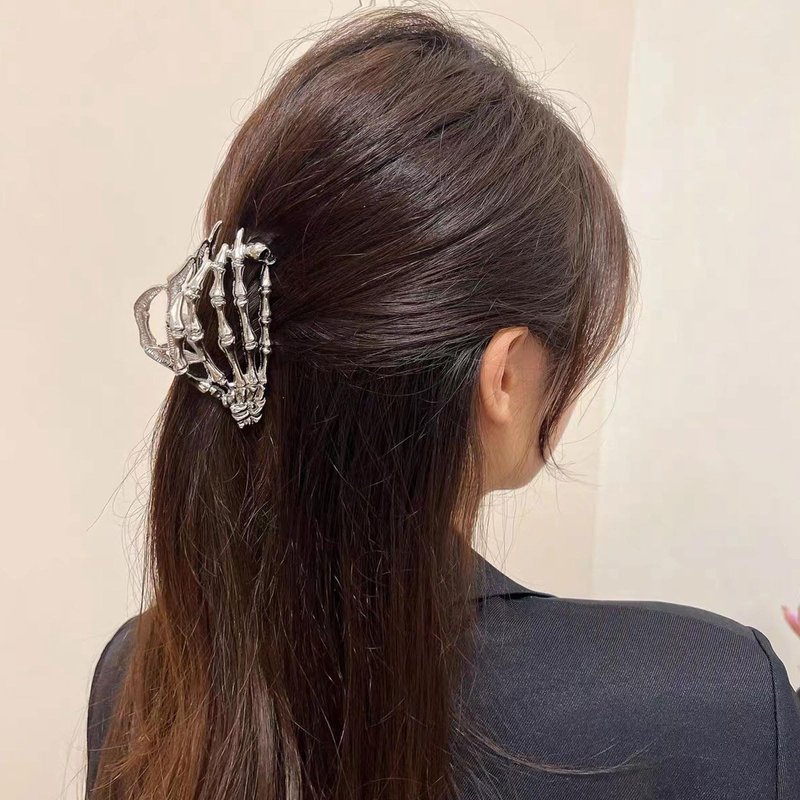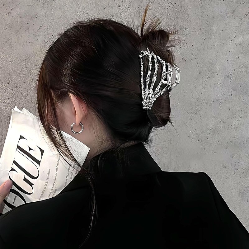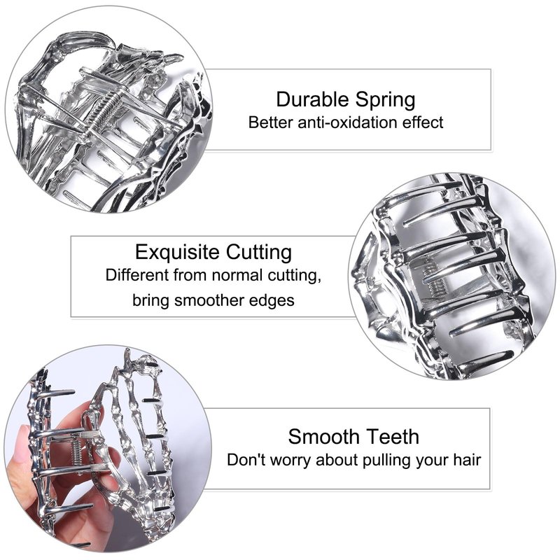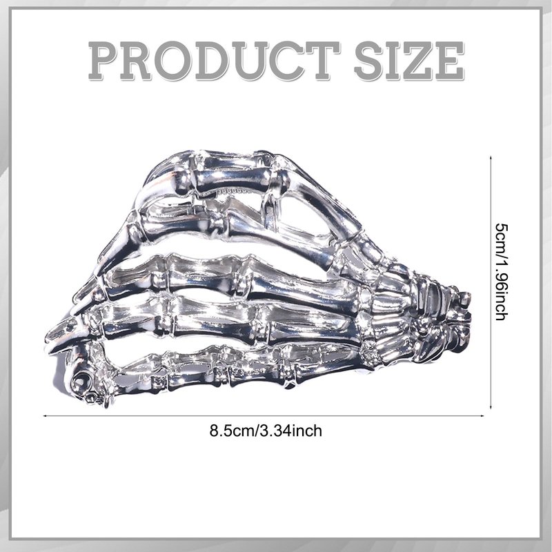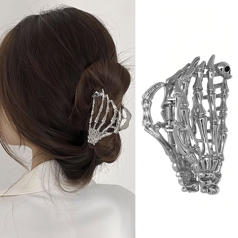 FULANSI Skeleton Hand Hair Clip Metal Silver Hair Claw Clips Gothic Halloween Hair Accessories for Women Fashion Skull Claw Clips for Thick/Thin Hair Strong Hold Hair Jaw Barrettes Party Decor