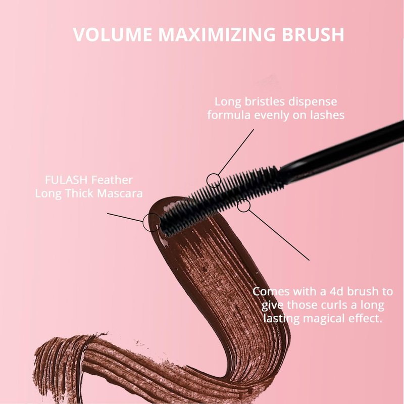 Fulash Mascara, Washable Mascara, Lengthening Mascara, 3D Fibre Lash Mascara, Volumizing, Smudge-Proof, Vegan Formula Mascara Brown 6ml