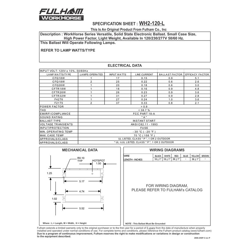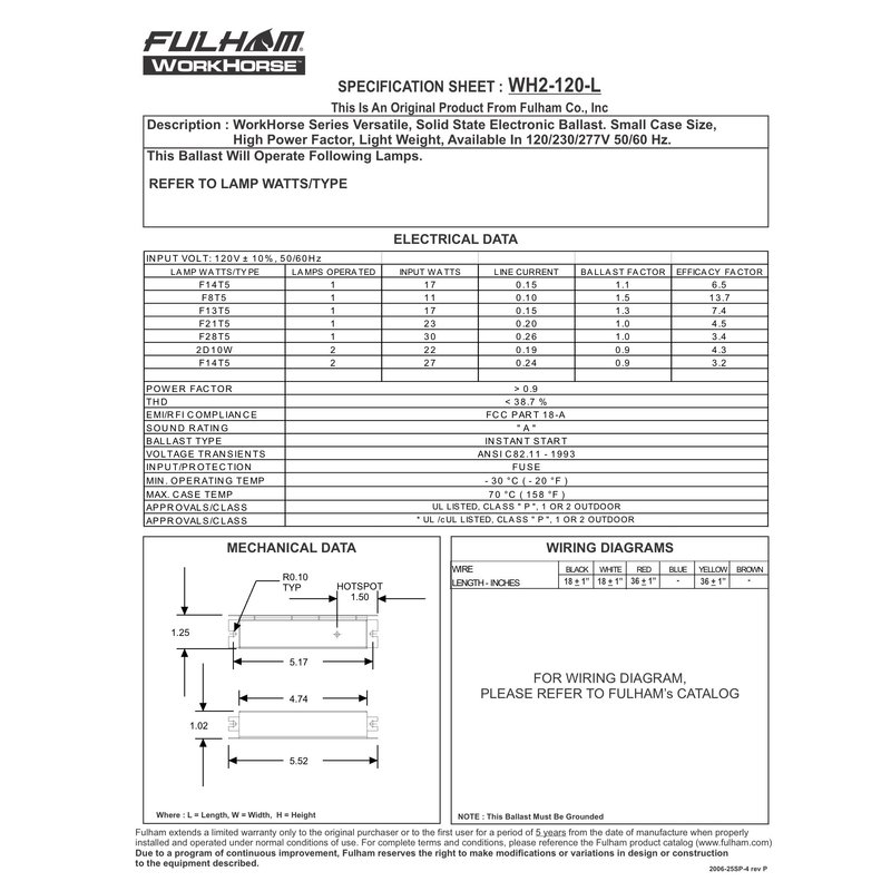 Fulham Lighting WH2-120-L Workhorse 2 Adaptable Electronic Fluorescent Lamp Ballast, 1 Count (Pack of 1), Silver