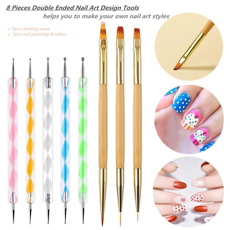 - 【8 Pieces Double Ended Nail Art Design Tools】 Includes 5 pieces nail art tool dotting pens and 3 pieces nail art painting brushes, helps you to make your own nail art styles. Perfect for professional nail salons and DIY nail art at home. With a range of brush sizes, this set caters to all nail art needs, enabling swift creation of stunning nail.