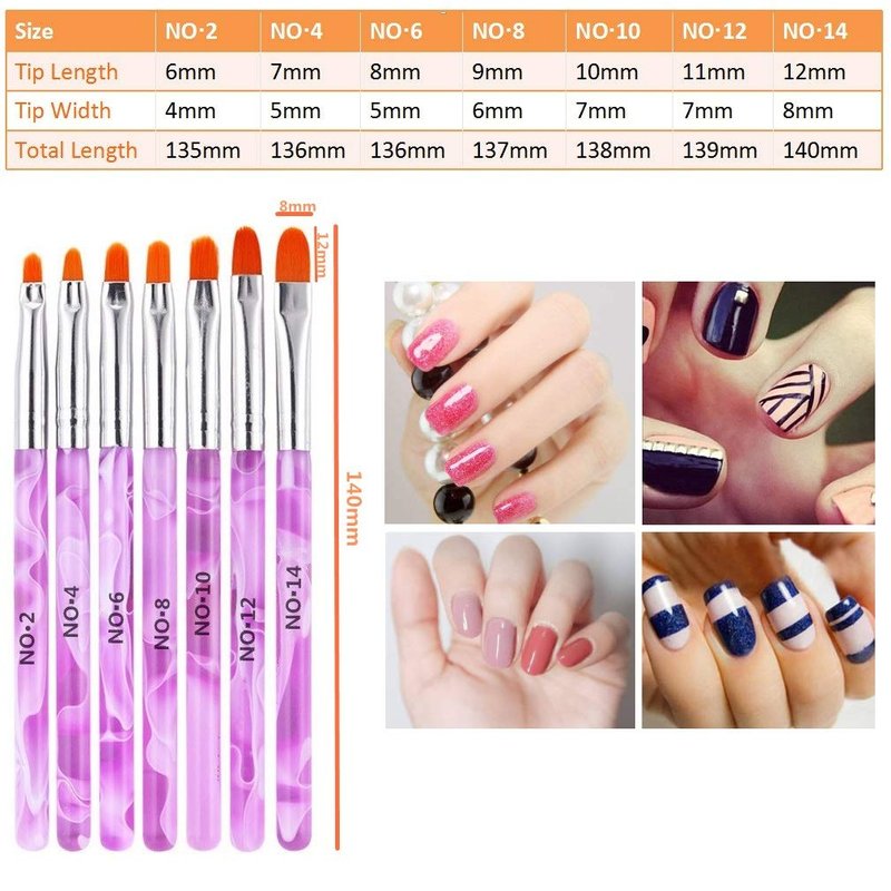 - 【Set of 7 Nail Art Brush Kits】 Set of 7 nail art brushes in 7 different sizes. 7 sizes: No. 2 / 4 / 6 / 8 / 10 / 12 / 14