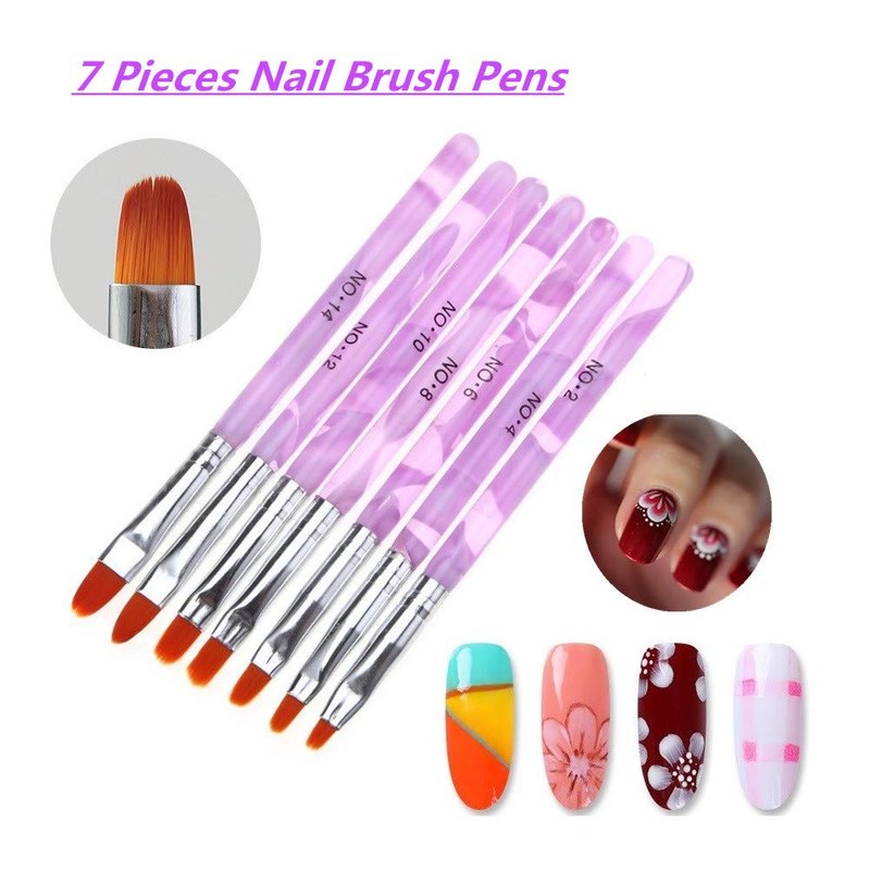 FULINJOY 7 PCS UV Gel Nail Brush, Acrylic Nail Tips Builder Brush Pen Drawing Brushes Pen Tool Set