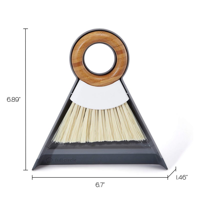 Full Circle Tiny Team, Mini Compact Brush and Dustpan Set, Small Portable Handheld Broom & Crumb Sweeper for Home, Bathroom, and Kitchen Countertops, White