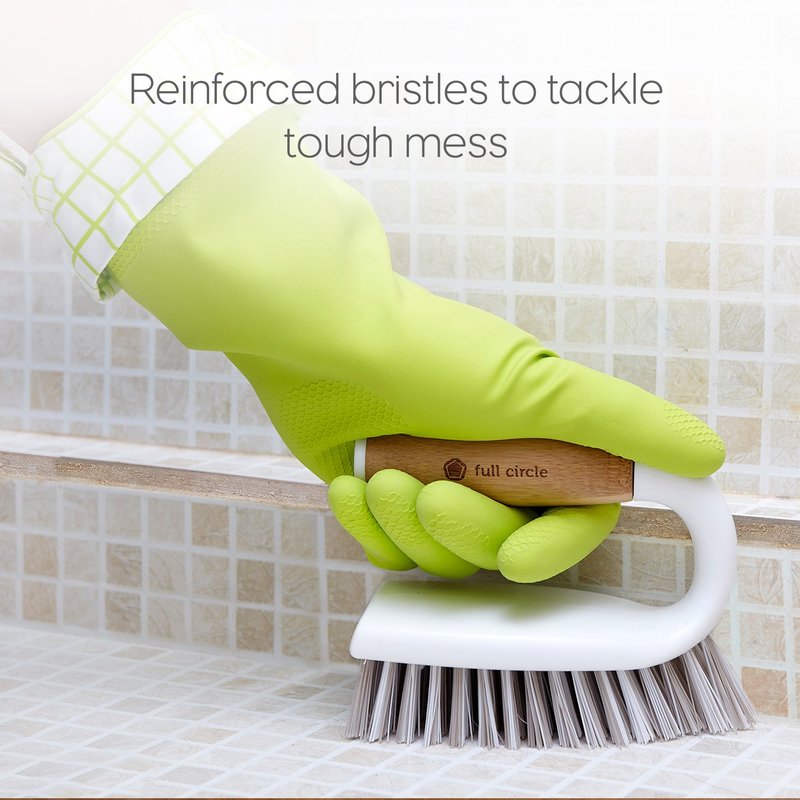 - Reinforced bristles to tackle tough messes such as grout grime and shower scum