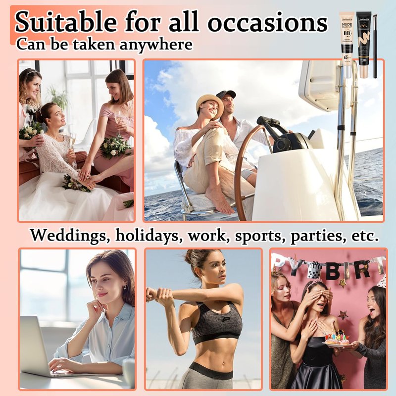 - 【Liquid Foundation Makeup Set】Full coverage concealer foundation has a variety of different uses such as even coverage and long-lasting sunscreen, which is very practical and easy to meet your makeup and sunscreen needs when you are relaxing, partying, at the beach, traveling, shopping and walking.