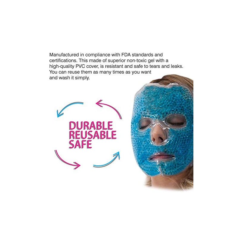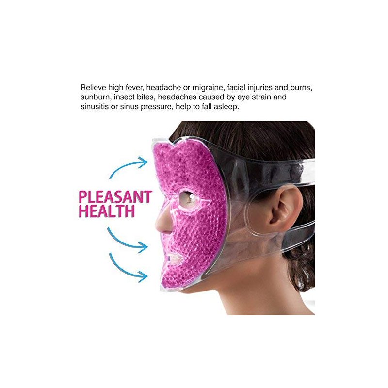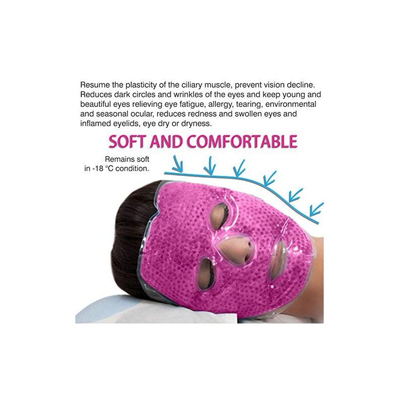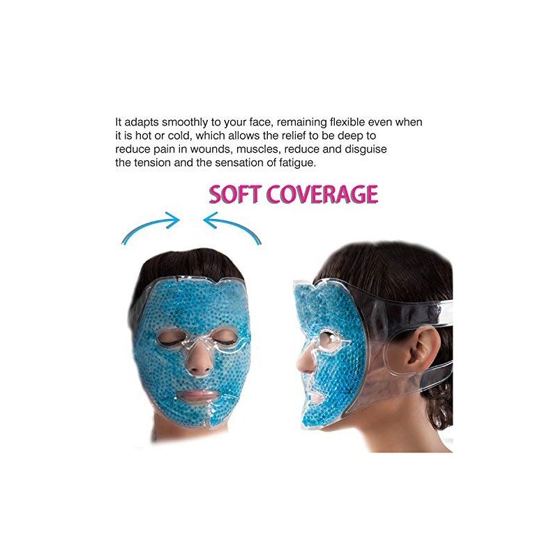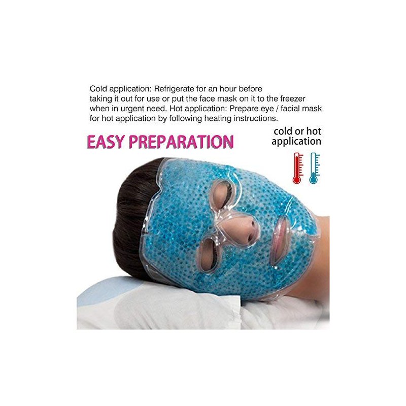 Full Face Gel Mask + Bonus: Eye pad, Hot & Cold Therapy Set |Spa Compress Thermopearl Treatment, Stress Relief, Treats Puffy Eyes, Dark Circles, Acne, Bags |Women Men Gift for Birthday or Anniversary