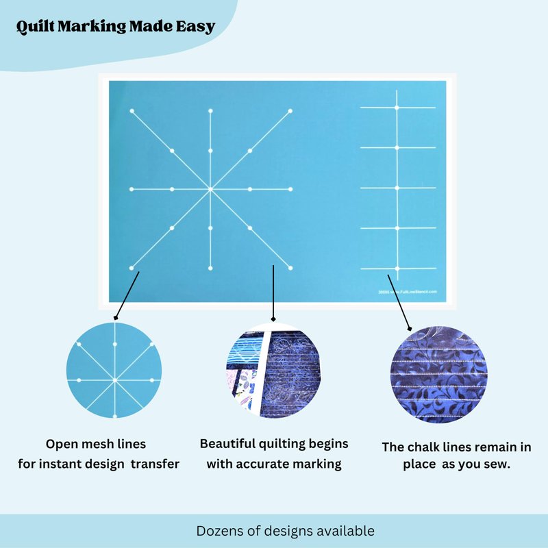 - DESIGN GUIDE - Use this guide to create unique block designs and borders, the lines help keep designs balanced and symmetrical. This Full Line Stencil transfers the complete design to your fabric using our patented Pounce Pad & chalk system