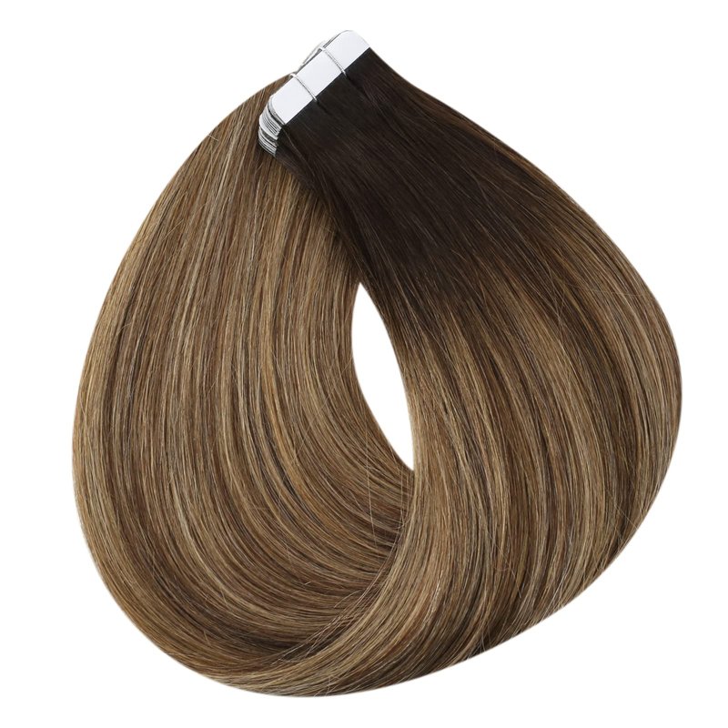 Ombre Balayage Tape in Hair Extensions is the Symbol of Full Shine Hair. If You Are Tired Of Basic Pure Color, Choose Ombre Balayage Color Is A Correct Choice, Have A Try:)Product Details Hair Material:100 percent Real Hair Texture: Straight, and have a natural wave when wet or left to air dry or diffused.Tape: America White Tape Tape size: 0.8cm * 4cmSet: 1.5g/pcs, 20 pcs/package, 30g/package Notice Before Order1.Quantity Needed: 150-250 Grams, 3-5 Packs are recommended for whole head. If You Are Short Hair, Reduce 1 Pack. 2.About Style: Our Human tape in hair extensions are just like your own hair and can be styled, curled or straightened as desired. Daily DIY will reduce the life span of tape ins, please use more nutrition.3.About color: Our Tape Hair can be colored darker but not lightened. always test a small piece when you dye.4. About wash: Wash Your Own Hair Without conditioner When it’s first time to apply in . Don't wash the hair at least 72 hours after the attachment, Everyday Wash is not good for your extensions. Use sulfate free shampoo and conditioner on the hair.5. About Care: We suggest you to use the rub in oil to revive dry hair; Sleep with a silk cap or buy a silk pillowcase will protect the hair.6. About Usage: Hair Can be reused with replace tape. And we suggest to adjust the tape every 2-4 weeks to keep the hair stay well.Find Beauty And Confidence With Full Shine Hair.