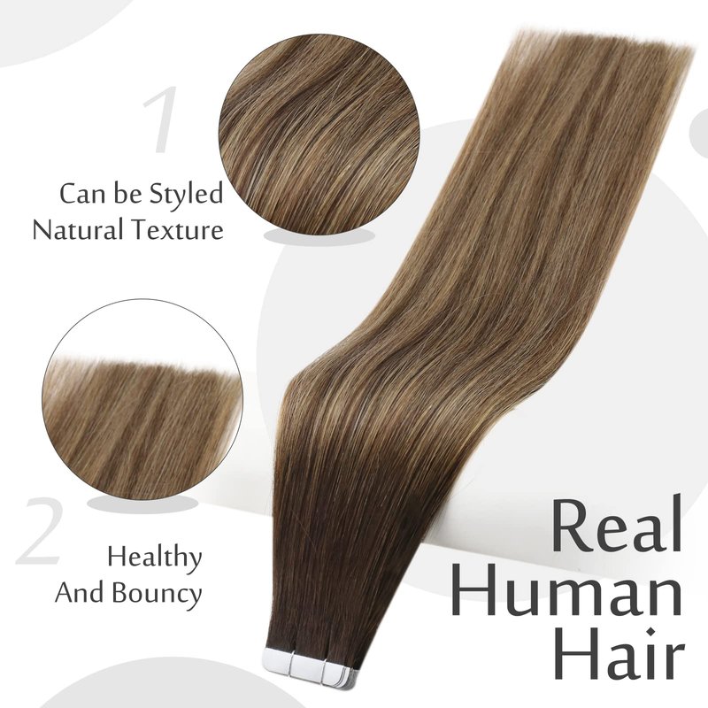 - [Available in Various Shades] Balayage And Ombre And Pure Colors Are Available.Full Shine Tape in Hair Extensions Human Hair Offer You So Many Different Shades for You to Choose From,From Natural Shades of Blonde, Brown And Black to Other Trendy Colors. When Using Them, You Can Also Always Create Your Preferred Perfect Blend by Using Two or Three Different Shades to Obtain The Most Natural Look.Always Confirm Your Roots Color at First And Then Decide The Bottom Color.