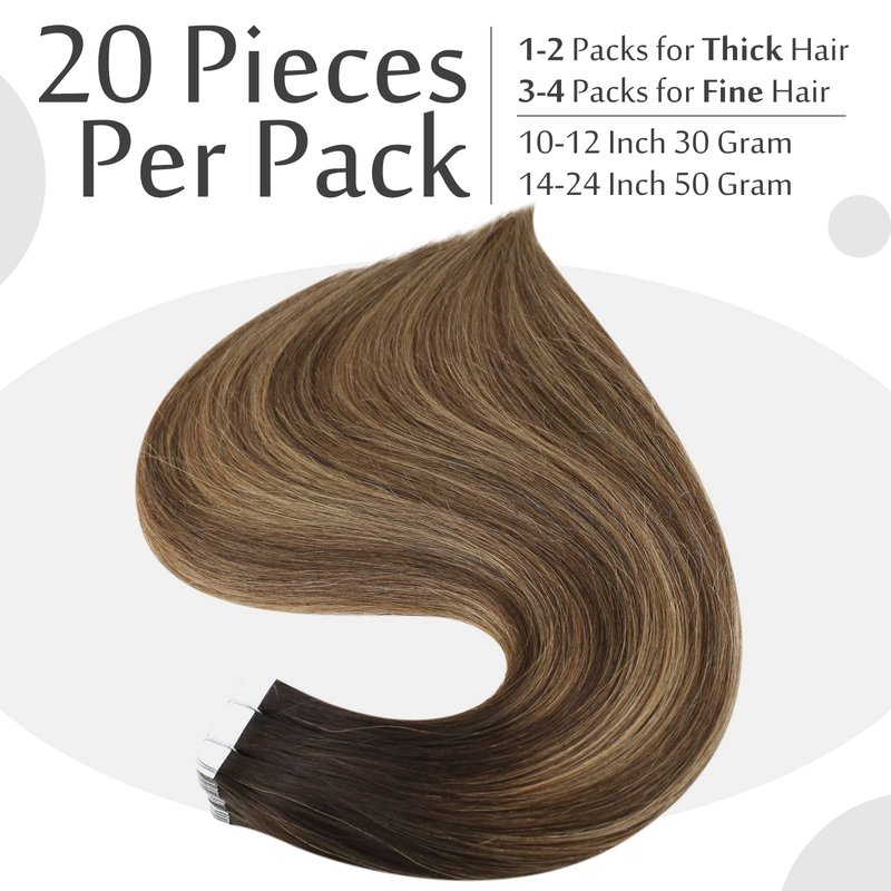 - [Less Maintenance And Recommended Usage] Unlike Other Methods,Tape in Hair Extensions Require Less Maintenance.Depending On How Fast Your Hair Grows And How You Care for Your New Hair,You Will Only Need to Visit The Salon Every 3 to 6 Weeks After The Application of Your Hair Extensions.If You Have Thick Hair,1-2 Packs to Increase Weight And 3-4 Packs to Increase Length,If You Have Thin Hair,3-4 Packs to Increase Weight And 1-111 Packs to Increase Length.