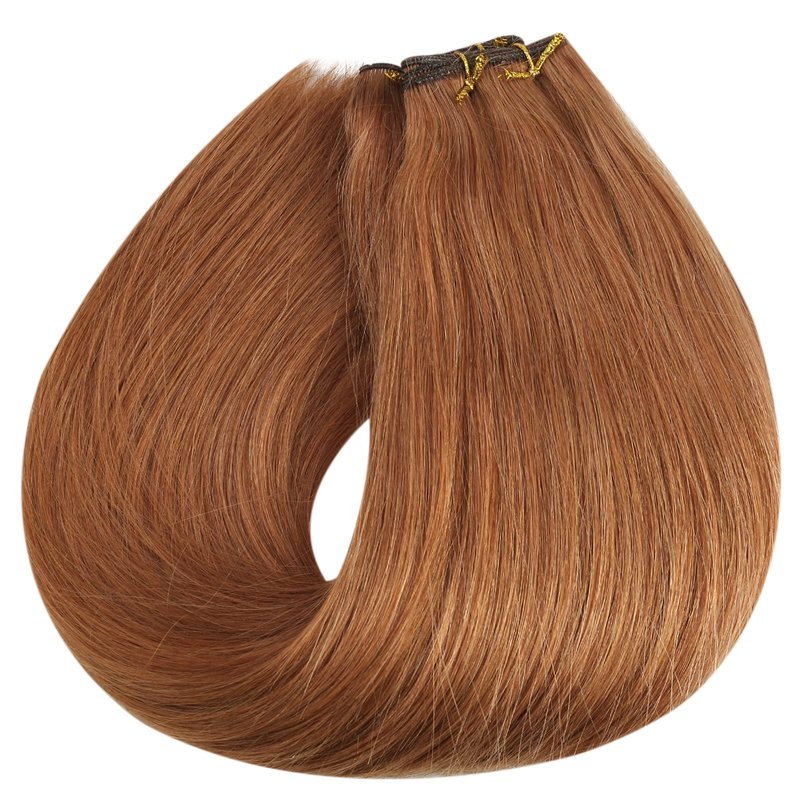 Full Shine 18 Inch Genius Weft Hair Extensions Human Hair Color Copper Human Hair Weft Sew In Hair Extensions Real Human Hair Auburn Hand Tied Hair Extensions Soft Silky Straight Hair 50G