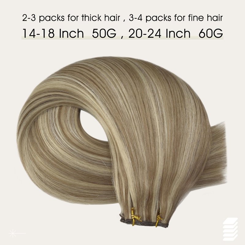 - 【Specifications 】Full Shine genius weft hair extensions human hair specifications :14-18 inch,50 grams one pack; 20-24 inch,60 grams one pack .Usually,2-3 packs for full head attachment.You can attach to the natural hair using various methods such as sewing, clips, or glue.