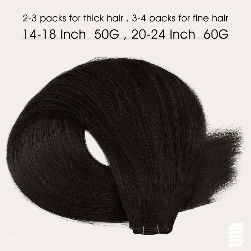 - Specifications: Full Shine Genius Weft Hair 14-18 inches,50g per pack;20-24 inches,60g per packUsually,2-3 packs for full headYou can use various methods(such as sewing,clips or glue)to fix it on your natural hair