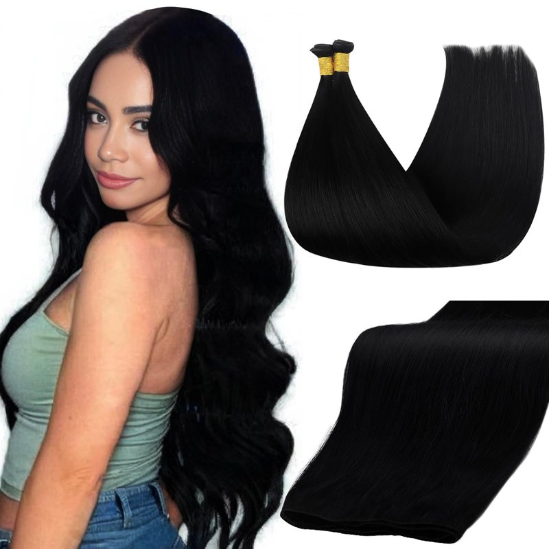 Full Shine 24 Inch Weft Hair Extensions Human Hair Sew In Hair Extensions Real Human Hair Black Human Hair Extensions Sew In Genius Weft Hair Extensions For Women #1 Black