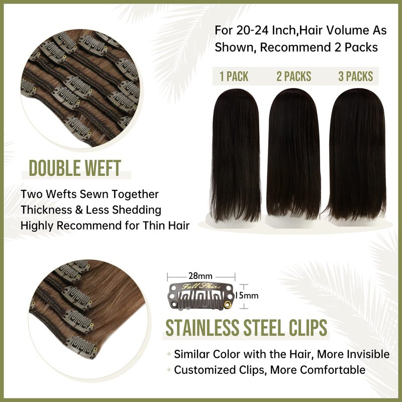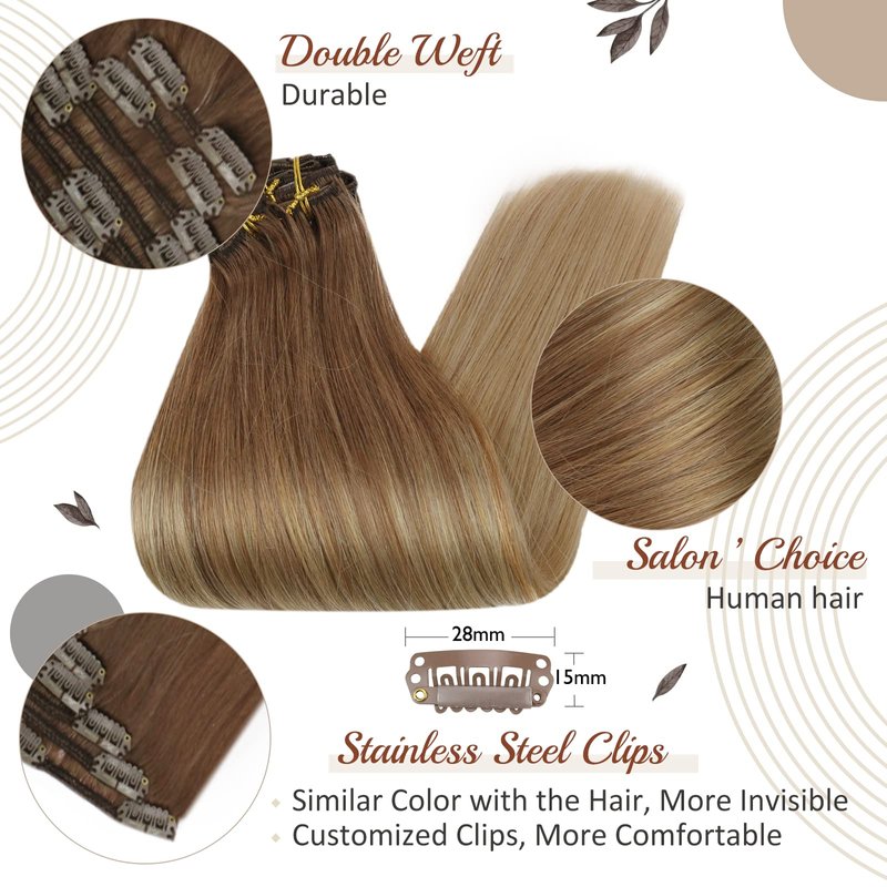 - 【Triple Weft Hair Clip in Extensions】Our clip in hair is three-layer weft,which is flat and invisible than most double weft clip in human hair on Amazon.This can also reduce the possibility of hair loss.