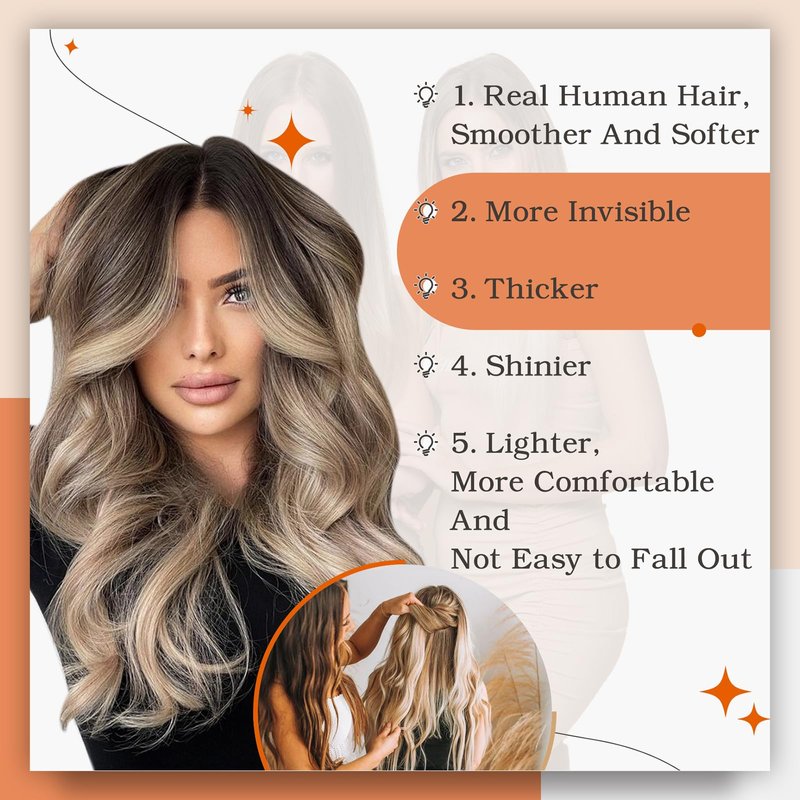 - 9.Compared to Clip in Hair,Our Tape in Hair Extensions Human Hair Are Light And Do Not Weigh Your Hair Down.