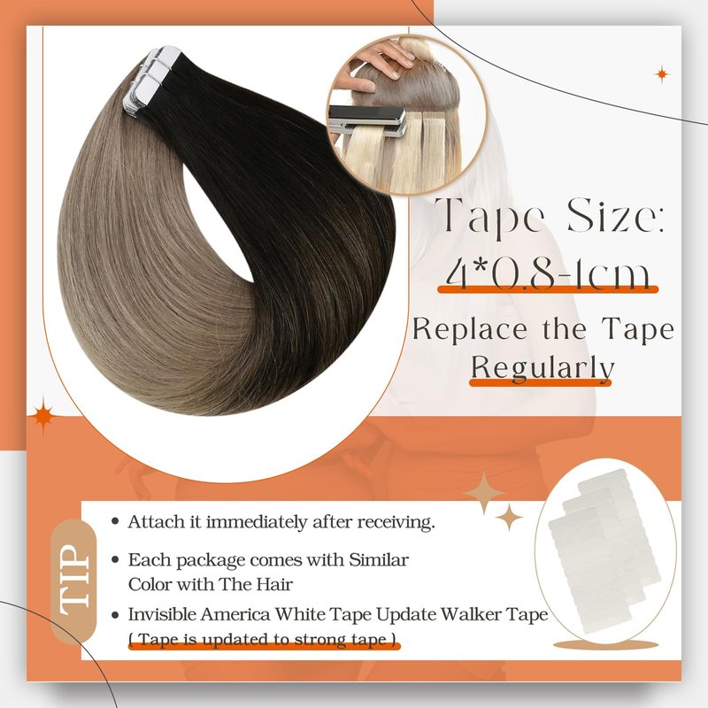 Full Shine Tape in Extensions Are Made With Real Remy Human Hair and Premium Hypoallergenic Tape Adhesive That is Strong, Safe, and Non-damaging. We are Improving Our Tape Quality with an Anti-shedding Technology Which Feature a Unique Sew Line on the Tape Weft to Prevent Shedding and Tangling. Our Hair Extensions Naturally Blend With Your Own Hair and Can Be Washed and Blow Out, Styled Just Like Your Own Hair.