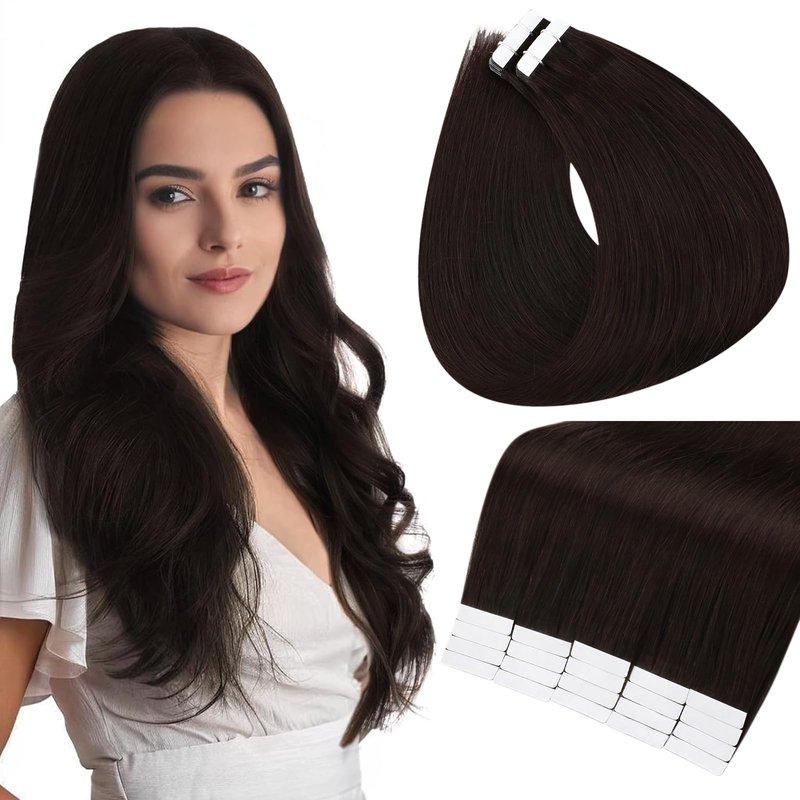 From Custom Color Like Balayage to Fun Colors and Cuts, Full Shine Tape in Hair Extensions Human Hair will Compliment Your New Look and Make you Feel Like a Brand New You.We Introduced Short Tape in Extensions in this Inventory, Cool Girl With Short Hair Will Love It. :)It is Simple, Completely Invisible and Giving All Natural Appearance.Raw Material: Remy Human Hair Hair Length:20 Inch Color:#2 Dark Brown Tape Size: 0.8 cm * 4 cm Weight: 2.5g/pcs Package: 40 pcs/package Total weight: 100g/package Tape: White American Tape In Order to Use Our Tape in Human Hair Extensions Better, Please Follow the Instructions Below1.Please Heat Double Sided Tapes ( 70-80 Centigram is Ok ) by a Straightener Before Using them. Then the Glue in the Tape Will be in Perfect Condition and Can Last a Long Time.2.Don’t Wash Your Hair Until 48 Hours after Your Installation Appointment.3.Don't Use Any Products Especially Near the Bonds that Contain Alcohol, Oil or Ethanol As this Can Damage the Bonds on Your Hair Extensions and Cause them to Fall out.4.Don't Go to Sleep with Wet Hair Extensions. After You Dry and Brush Your Hair Braid it into a Ponytail to Avoid Tangling While Asleep.Read Before Order1)Quantity: 100g-150g is Ideal for Thin, Fine Natural Hair as Well as for those Who Want Natural, Everyday Length and Volume, 150g-250g is Ideal for Medium to Thick Natural Hair and for those who Want Ultimate Length and Volume.2)Color: Slight Color Difference is Accepted as Different Monitor May Show Color Differently.Hair can be Styled and Dyed, but Ask Your Hair Stylist to Do It to Avoid the Destroy of the Hair.The Hair Could Last Around 8-16 Weeks ( According to Using Method) and The Hair Strips Can be Attached Again with New Tape.We Firmly Believe that Your Hair is More than Hair, it is Your Statement Piece. Find Beauty And Confidence With Full Shine Hair.